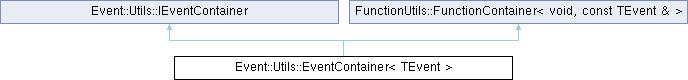 | Public Types inherited from FunctionUtils::FunctionContainer< void, const TEvent & > | |
